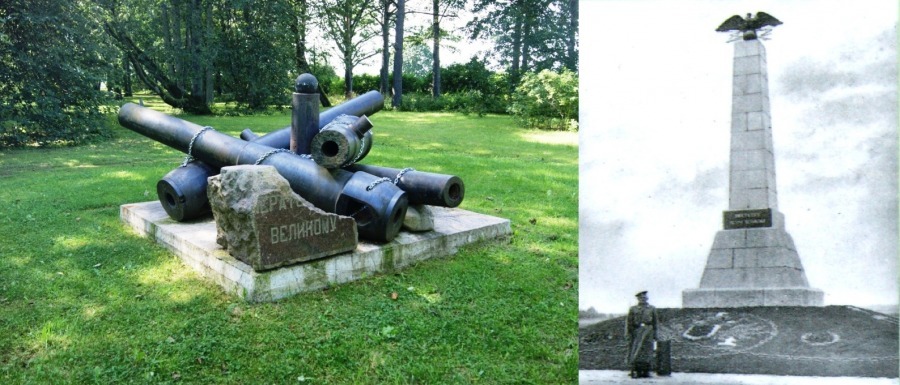 Чуть дальше выставлены пушки и фрагмент памятника Петру Первому. Когда-то это были части красивого обелиска, который стоял в Саласпилсе. Там был большой военный лагерь. Во время Первой мировой войны монумент, установленный в лагере, был уничтожен, а его остатки просто скидали в яму и закопали. В 2007 году фрагменты нашли строители и передали их в музей.