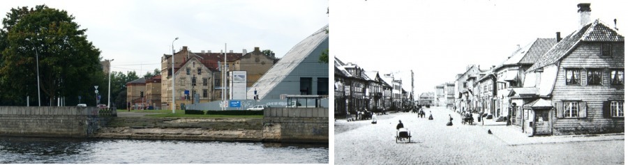 А вот бывшая центральная улица острова, Акменю, тихо прозябает в тени стеклянного гиганта.
