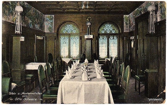 Впервые ресторан, владельцем которого стал купец второй гильдии Отто Шварц, был открыт в 1882 году в здании гостиницы «Рим», которая принадлежала латвийскому предпринимателю Кристапу Морбергу. Ресторан вскоре приобрёл популярность, и владелец решил в 1892 году перенести его в здание на углу улицы Калькю и бульвара Бастея. На вид это простой пятиэтажный дом, каких полно на улицах нашего города, однако до сих пор не удалось точно определить, кто автор этого проекта, известен лишь год постройки – 1870. Заведение получило славу лучших «винных и устричных комнат» в Риге. Рекламы дружно сообщали, что это «единственное место в Риге, где можно отведать дорогих вин, устриц и насладиться гаванскими и немецкими сигарами».